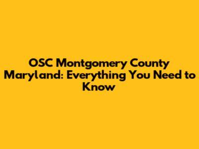 OSC In Montgomery County, Maryland: All You Need To Know