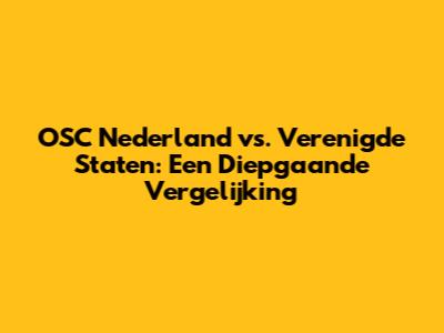 OSC Nederland Vs. Verenigde Staten: Een Diepgaande Vergelijking