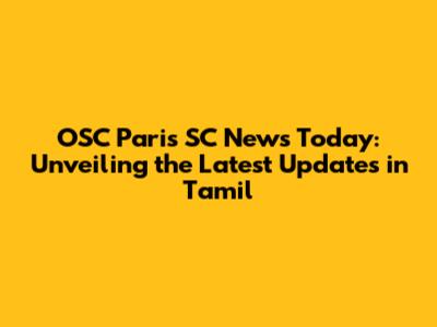 OSC Paris SC News: Latest Updates In Tamil