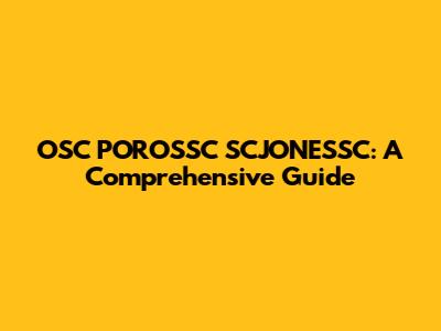 OSC POROSSC SCJONESSC: A Comprehensive Guide