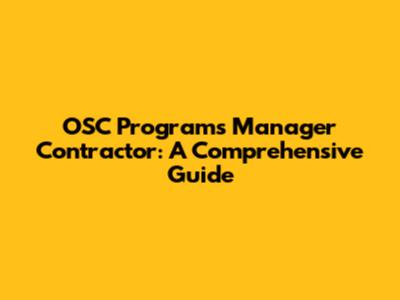 OSC Programs Manager Contractor: Your Guide To Success