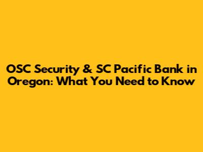 OSC Security & SC Pacific Bank In Oregon: What You Need To Know