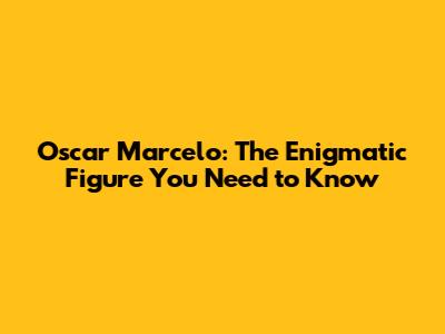 Oscar Marcelo: The Enigmatic Figure You Need To Know
