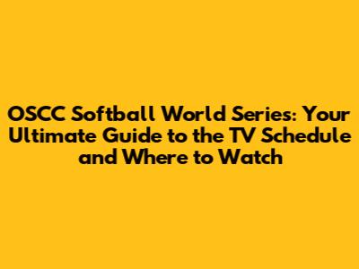 Where to Find the OSCC Softball World Series TV Schedule