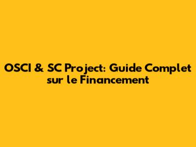 OSCI & SC Project: Tout Savoir Sur Le Financement
