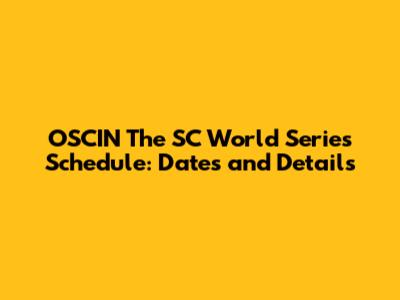 OSCIN The SC World Series Schedule: Dates And Details