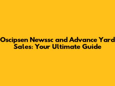 Oscipsen Newssc And Advance Yard Sales: Your Ultimate Guide