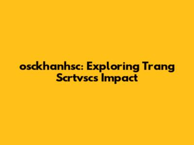 Osckhanhsc: Exploring Trang Scrtvsc's Impact