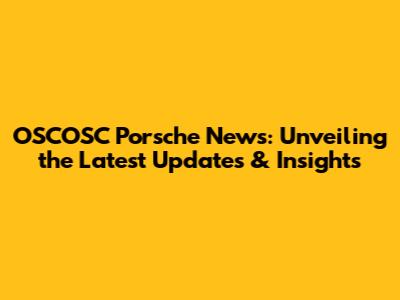 OSCOSC Porsche News: Updates & Insights