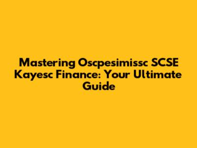 Oscpesimissc SCSE Kayesc Finance Explained