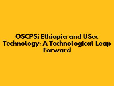 OSCPSi Ethiopia: Embracing USec Technology For Digital Growth