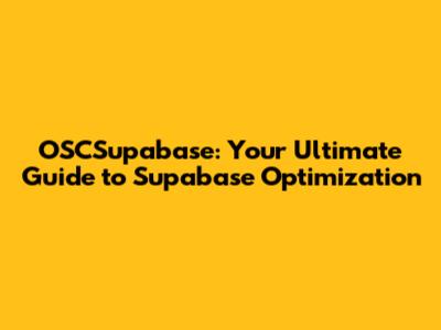 OSCSupabase: Your Ultimate Guide To Supabase Optimization