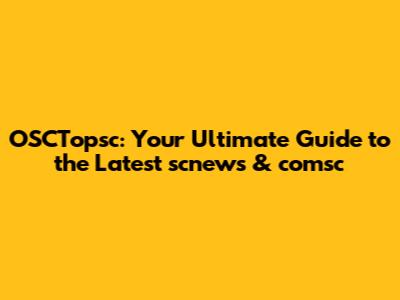 OSCTopsc: Your Guide To The Latest Scnews & Comsc
