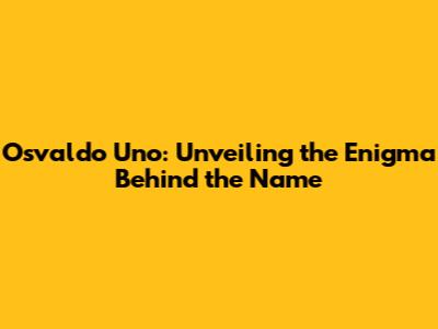 Osvaldo Uno: Unveiling The Enigma Behind The Name