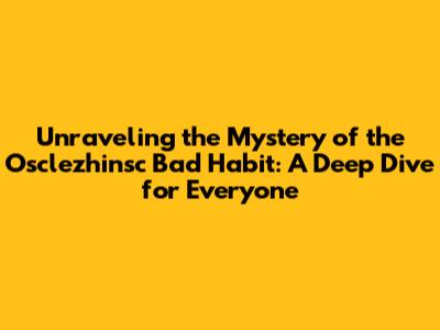 Unraveling the Mystery of the Osclezhinsc Bad Habit: A Deep Dive for Everyone