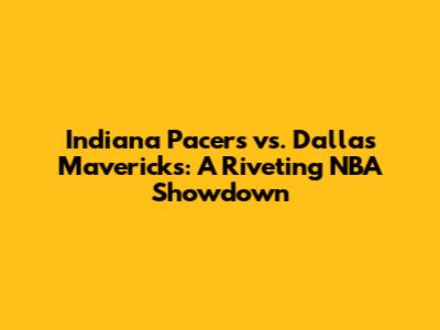 Pacers Vs. Mavericks: A Riveting NBA Showdown