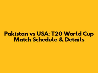 Pakistan Vs USA: T20 World Cup Match Schedule & Details