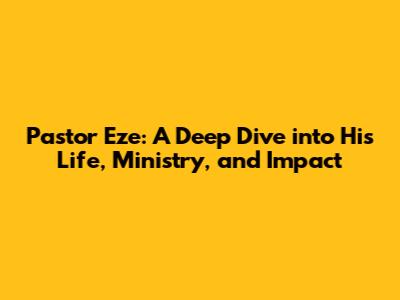 Pastor Eze: Life, Ministry, And Influence
