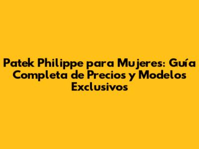 Patek Philippe Para Mujeres: Precios Y Guía Completa