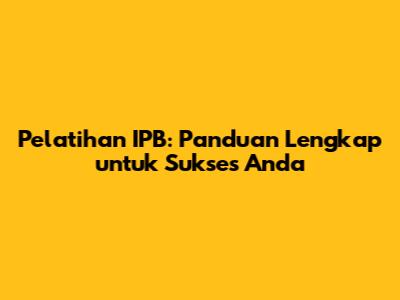 Pelatihan IPB: Panduan Lengkap Untuk Sukses Anda