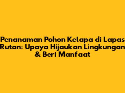 Hai guys! Kali ini kita bakal ngobrolin soal penanaman pohon kelapa di lingkungan Lembaga Pemasyarakatan (Lapas) dan Rumah Tahanan Negara (Rutan). Kerennya lagi, kita akan bahas dari berbagai sisi, mulai dari manfaatnya, jenis pohon kelapa yang cocok, sampai gimana sih cara nanam dan ngerawatnya yang bener. Penasaran kan? Yuk, kita mulai!