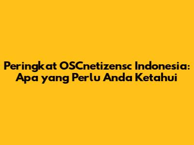 Peringkat OSCnetizensc Indonesia: Apa Yang Perlu Anda Ketahui