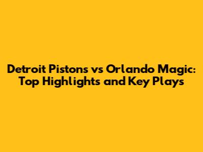 Pistons Vs Magic: Top Highlights And Key Plays