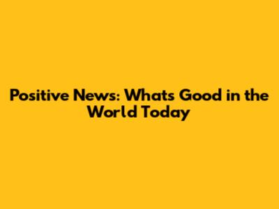 Positive News: What's Good In The World Today