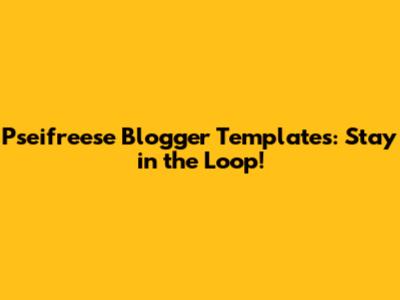 Pseifreese Blogger Templates: News, Updates, And Must-Knows!