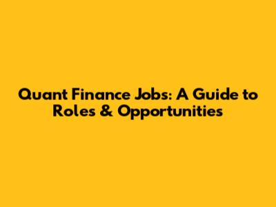 Quant Finance Jobs: A Guide To Roles & Opportunities