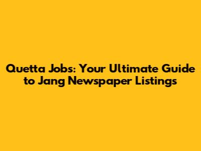 Quetta Jobs: Your Guide To Jang Newspaper Listings