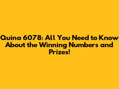 Quina 6078: Numbers Drawn And Prize Details!