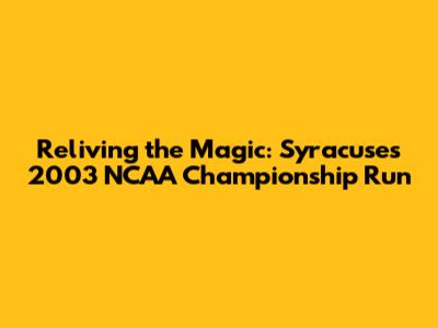 Hey guys, let's take a trip down memory lane and revisit one of the most unforgettable moments in college basketball history: the Syracuse Orange's incredible run to the 2003 NCAA Championship. This wasn't just any victory; it was a testament to grit, determination, and the sheer magic of the game. For Syracuse fans, it's a treasure chest of memories, a story told and retold, each time sparking the same thrill and pride. So, buckle up as we dive deep into the heart of that season, exploring the key players, the nail-biting games, and the iconic moments that etched this championship into the annals of basketball lore. We'll examine the strategies, the upsets, and, of course, the unforgettable performance of Carmelo Anthony. This wasn't just a championship; it was a defining moment for Syracuse University and a shining example of what can be achieved with teamwork, heart, and a little bit of orange magic.