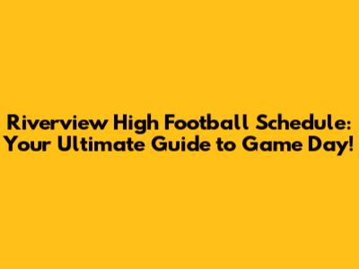 Riverview High Football Schedule: Game Dates & More!