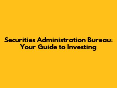 Securities Administration Bureau: Your Guide To Investing