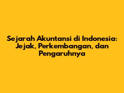 Sejarah Akuntansi Di Indonesia: Jejak, Perkembangan, Dan Pengaruhnya