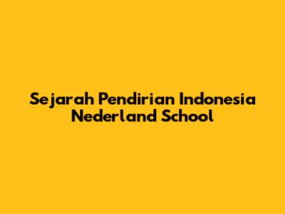 Sejarah Pendirian Indonesia Nederland School