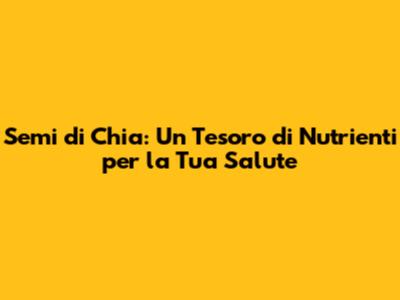 Ciao amici! Oggi vi portiamo nel fantastico mondo dei semi di chia, dei veri e propri superfood che stanno conquistando sempre più persone. Ma cosa rende questi piccoli semi così speciali? E quali sono i loro valori nutrizionali? In questo articolo, esploreremo a fondo i benefici dei semi di chia, analizzando la loro composizione nutrizionale e come possono migliorare la tua salute. Preparatevi a scoprire tutto quello che c'è da sapere su questi piccoli gioielli della natura!