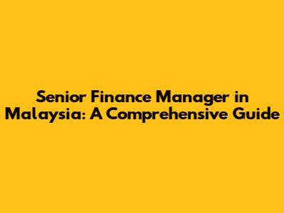 Senior Finance Manager In Malaysia: A Comprehensive Guide