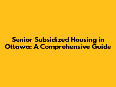 Senior Subsidized Housing In Ottawa: A Comprehensive Guide