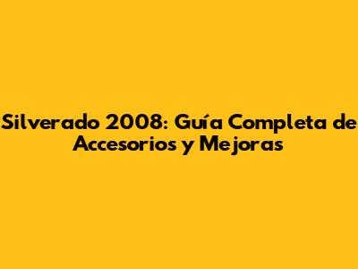 Silverado 2008: Guía Completa De Accesorios Y Mejoras