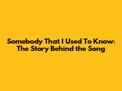 Somebody That I Used To Know: The Story Behind The Song