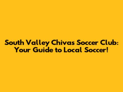 South Valley Chivas: Your Guide To Local Soccer!