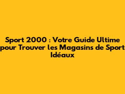Trouver un magasin Sport 2000 autour de vous n'a jamais été aussi simple. Grâce à internet et aux outils de localisation, vous pouvez rapidement identifier les points de vente les plus proches. Voici quelques méthodes efficaces pour dénicher votre Sport 2000 idéal :