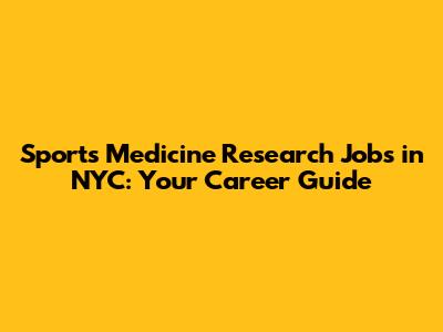 Sports Medicine Research Jobs In NYC: Your Career Guide