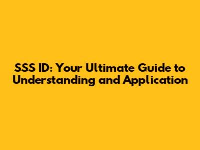 SSS ID: Your Ultimate Guide To Understanding And Application