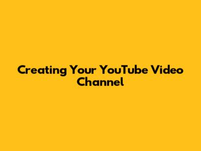 Creating Your YouTube Video Channel
