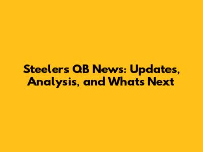 Steelers QB News: Updates, Analysis, And What's Next