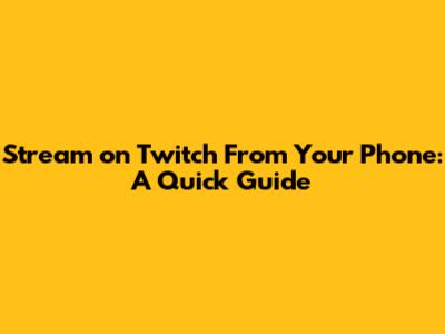 Stream On Twitch From Your Phone: A Quick Guide