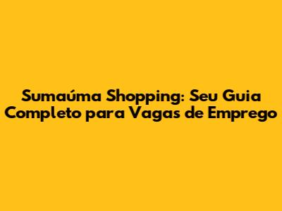 Como Encontrar Vagas de Emprego no Sumaúma Shopping